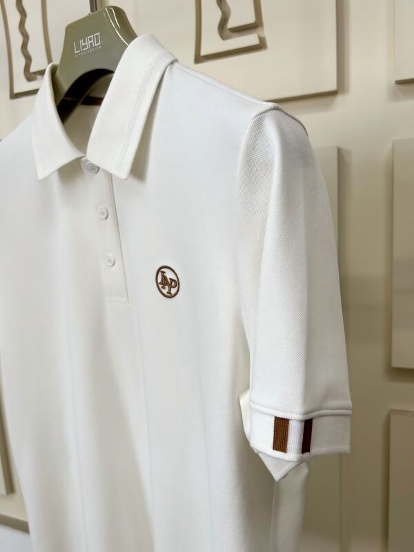 Koleksi Polo Pria Premium. Putih / abu-abu / kontras Kunci Hiasan bordir yang indah 4